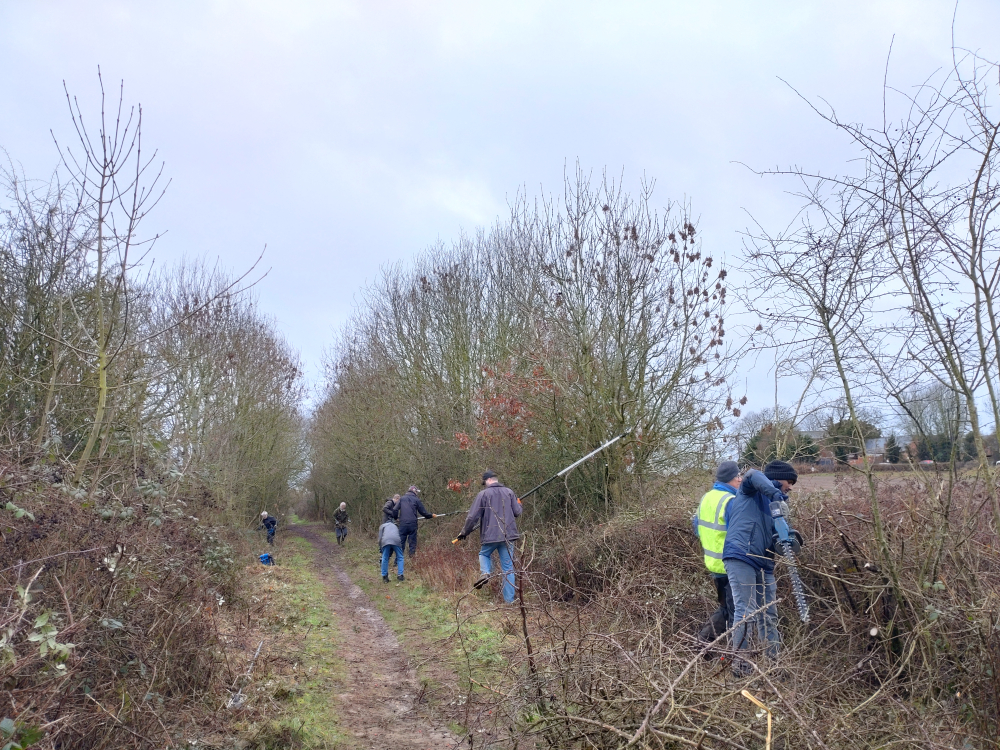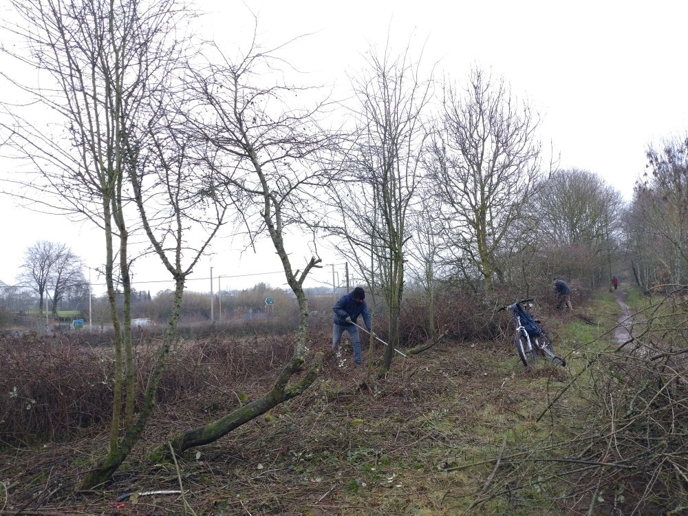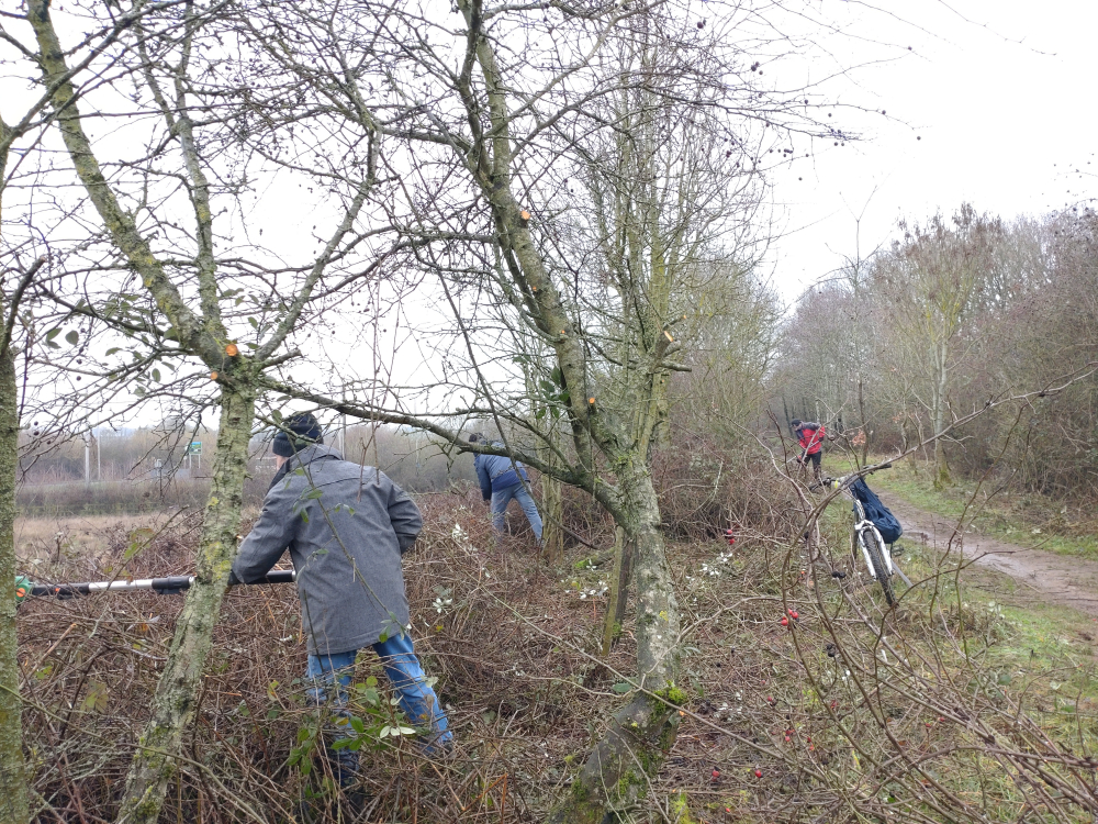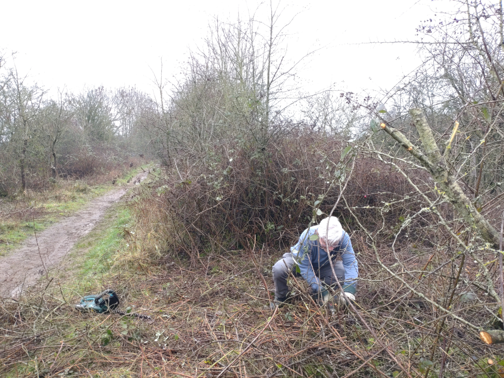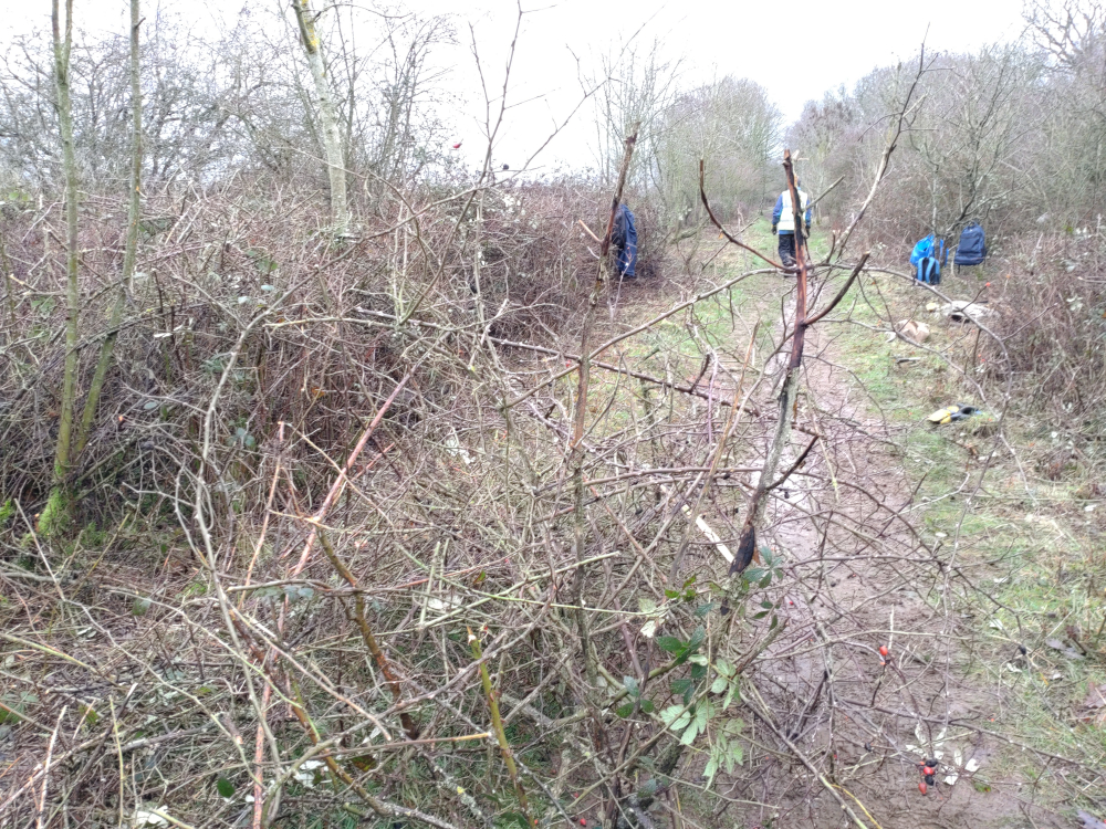 Eight trailblazers made it out today. Matt, Andrew, Marcus, Ian, Ram, Mark, Reece, and Paul, and we had the one task of taming the bramble scrub to allow unhindered passage through, and also to be able to see above it. This stops the feeling of being trapped in an oppressive and long green tunnel in the summer.