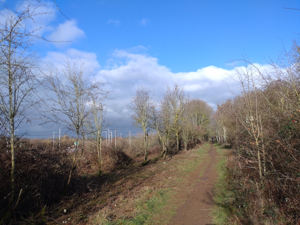 We are now on the connector path that connects the Cawston Greenway with the Dunchurch Bridleway, to make the circular route, which means that the three communities of Bilton, Cawston, and Dunchurch are all joined together via the off-road trail.