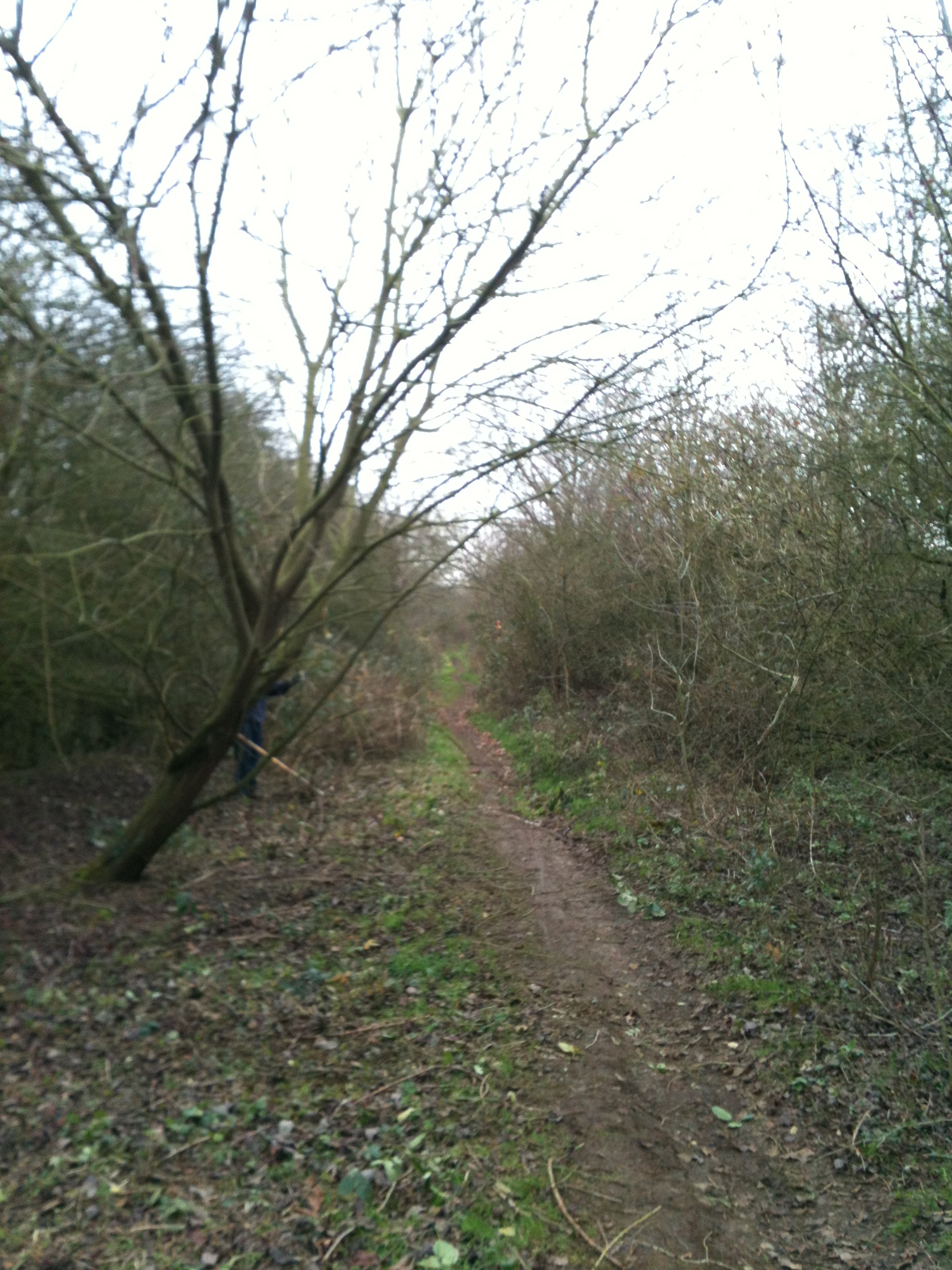 Basically at the point where we finished on the last workday, to the point that is where the greenway crosses the Coventry Road (the end) is 0.20 miles. I decided that if we clear 0.04 miles of path on each of the next five workdays, then we will get to the end before the end of the month. 0.04 of a mile sounds like no distance at all but convert it into meters and suddenly it is 65 scrubby, hawthorny, blackthorny, brambly meters and it isn’t quite the easy ride that it looks, in my mind’s-eye.