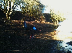 The rest of us gravitated back to the section north of the new underpass and carried on clearing scrub and burning brash. Eight of us turned out in total and it was great to see Ed and also young Paul who was back for half-term.
