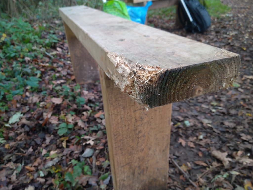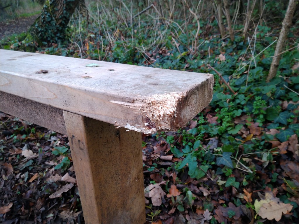 We have a beast of some sort that is chewing the benches…! We wanted them to be rural looking and to fit in – but not quite this much…