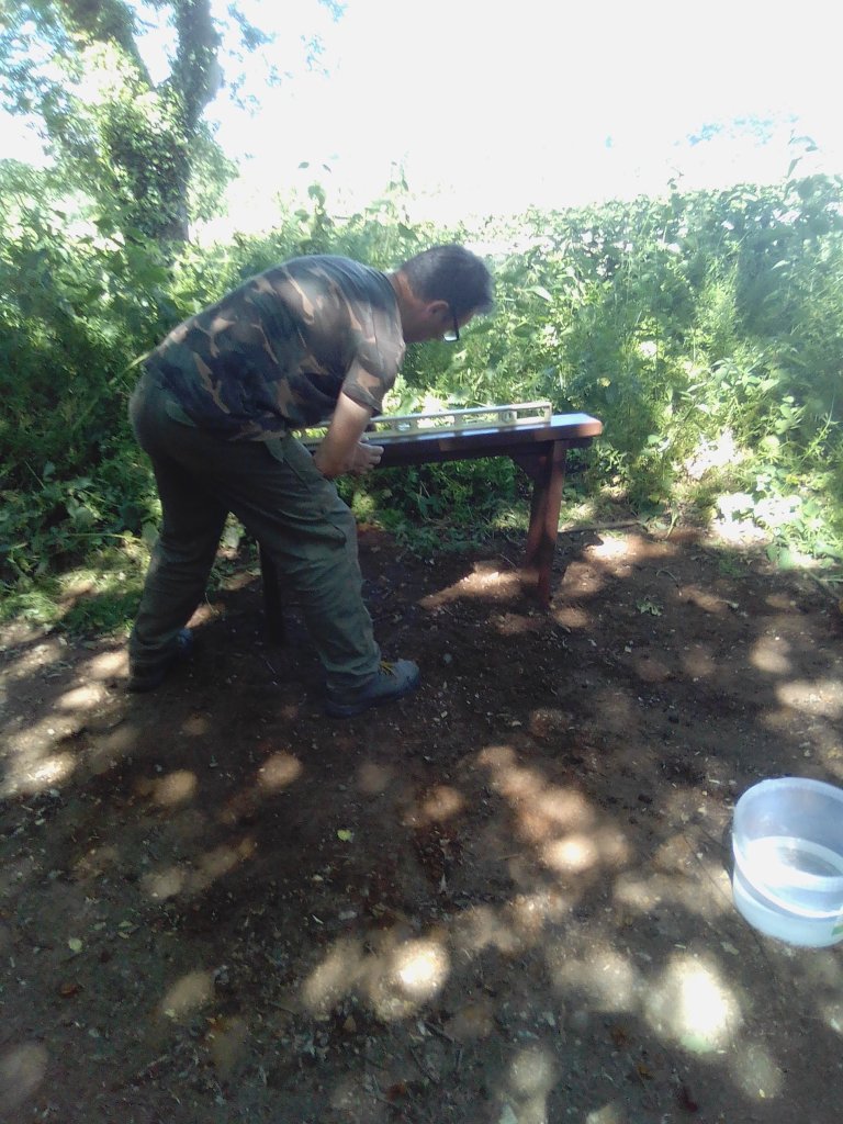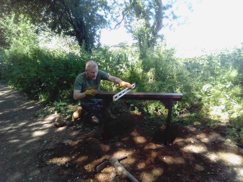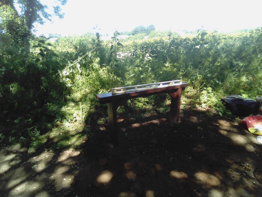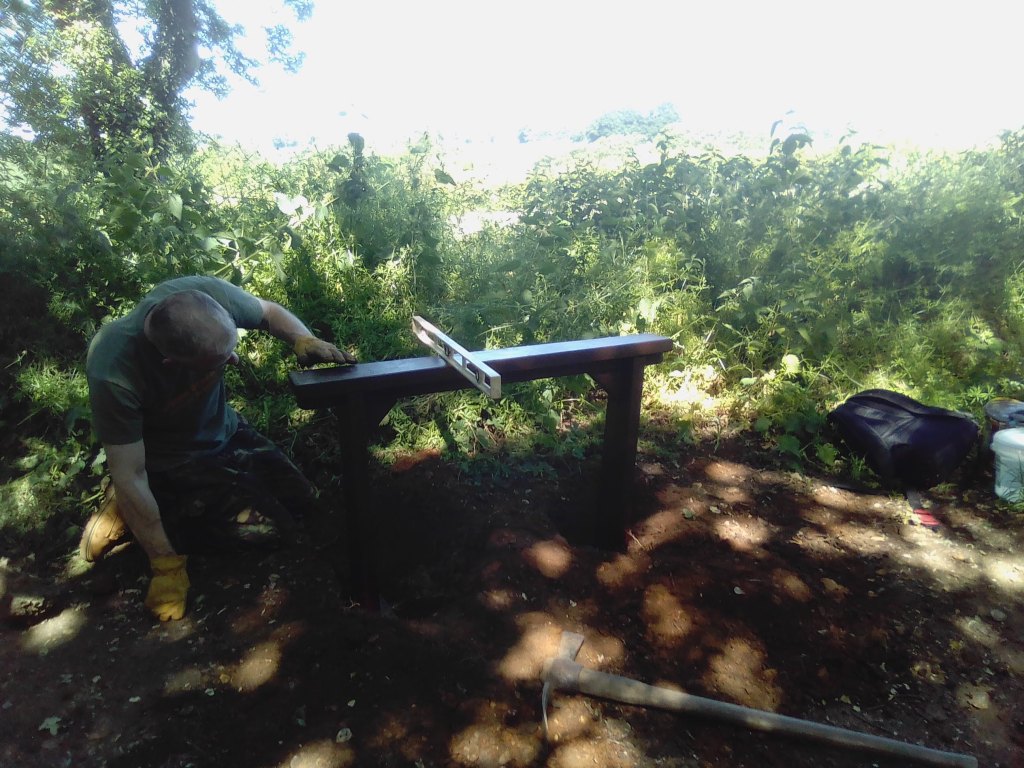 Our good friend, Andrew, made us a replacement bench for our quadrant. The missing bench was kicked over and I reused it at the snowdrop clearing. This bench sits a little higher that the rest so that people who do not want to sit quite so squat, can do so.
