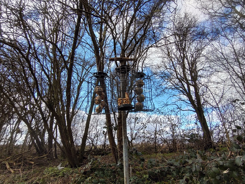 Moving to the birdfeeder clearing. The pesky squirrels have worked out how to open the top of the squirrel proof feeders!!! I don’t mind feeding the squirrels but the amount of fat balls that they get through is utterly ridiculous. To counter this I have wired the feeders shut. It is easy enough to untwist the wire and then retwist it after refilling. We can see how we get on.