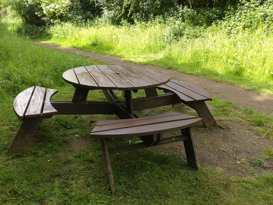 I restained the bench at the birdfeeder clearing whilst the technical guys fixed the second rectangle picnic bench. We will replace the first rectangle picnic bench with a couple of pedestal benches at some point.