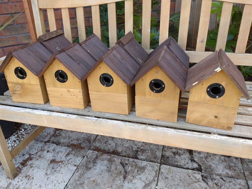 Views up and down showing the path filling up with colour, and our next traunch of bird nesting boxes for the sections of path either side of the underpass, with 25mm (blue tits, etc) and 28mm (great tits, etc) hole protectors to keep the predators at bay.
