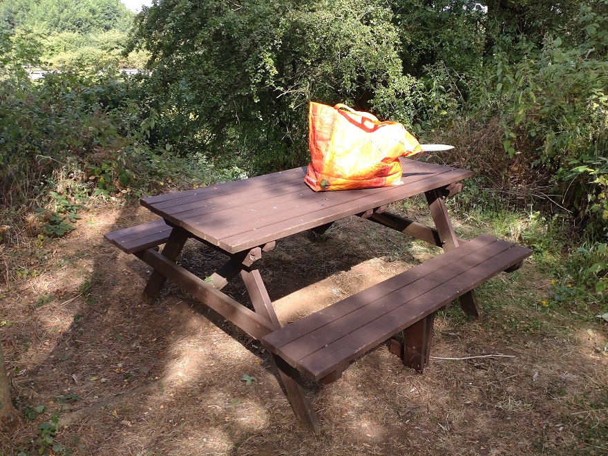 We also dragged a picnic bench up the bank and back into its place!!