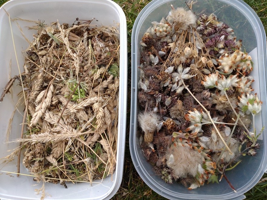 I have started my collection of local wildflower and grass seeds. Or course we will be buying a decent seed mix, but we do collect a lot of local seeds from various places to keep adding to the biodiversity.