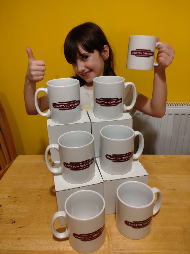 We have more Cawston Greenway mugs available, modelled by our wonderful Head of Retail, Ruby.