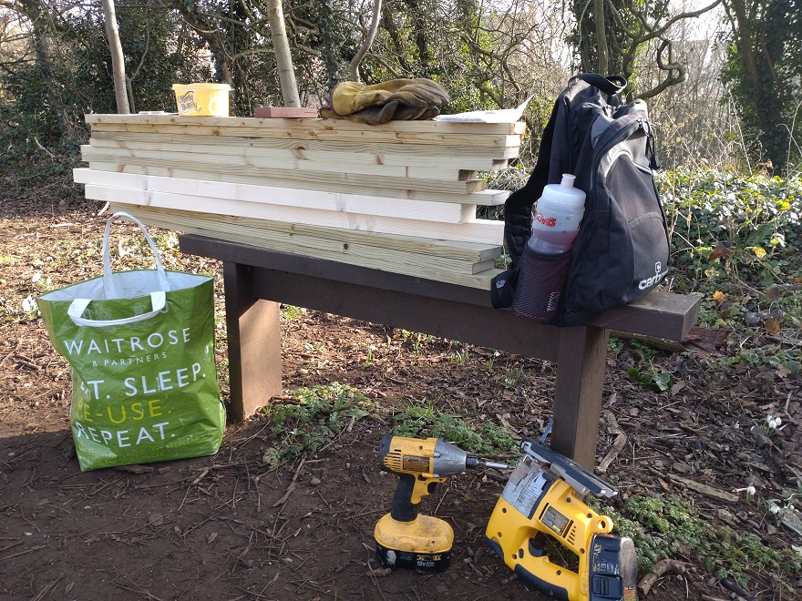 - Recycling our old picnic bench A-frames, which are made out of recycled car tyres (double win)