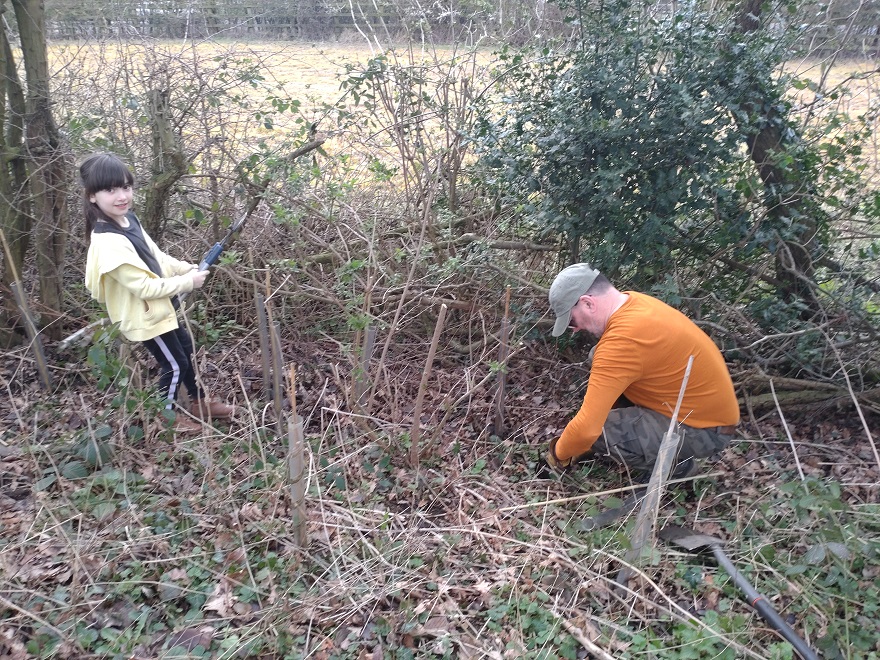 We bolstered the hedges at various places so wildlife has a hedge-habitat when the trees have grown and integrated with the existing edge.