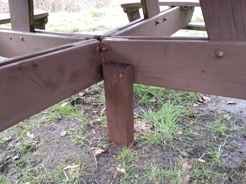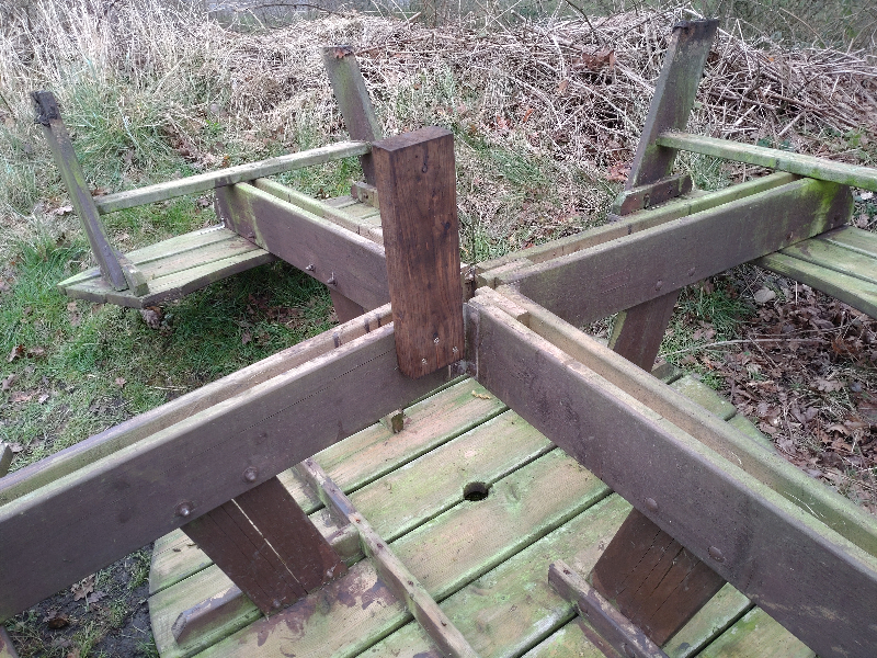 We managed to get four picnic tables done today. Andrew made a support to take care of the sagging that is happening to the round benches and it worked a treat on the first one.