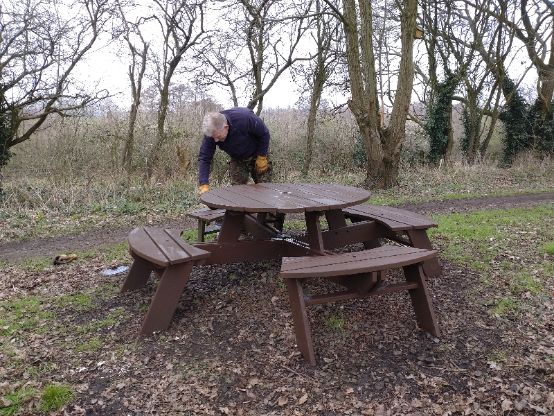 The bench height is improved and the whole thing sits much better. We will be fitting the support to the other two round benches next week.