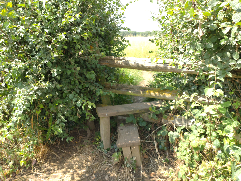 It’s a rather nice 1.3 km circular walk that crosses a field full of barley (so I am told) and then wheat. At the 1 km point there are stiles with paths off that go through the woods to the villages of Cawston and Bilton.