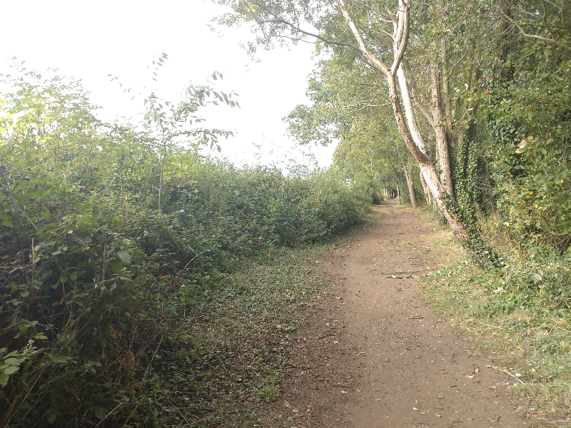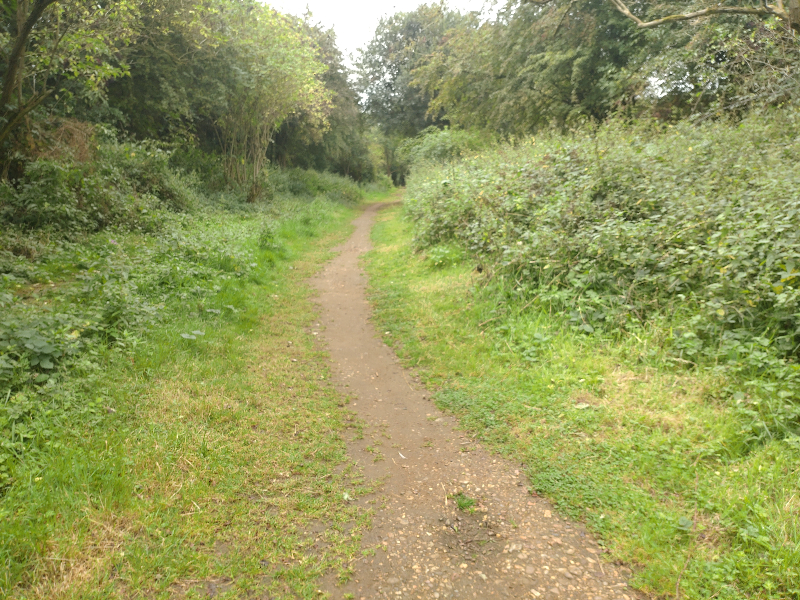 Somehow we continue to push on westwards and there are just 70 metres of path snipping back left, until the bridleway meets the railway. When we see 70 metres against the whole length of the bridleway, it looks like nothing.