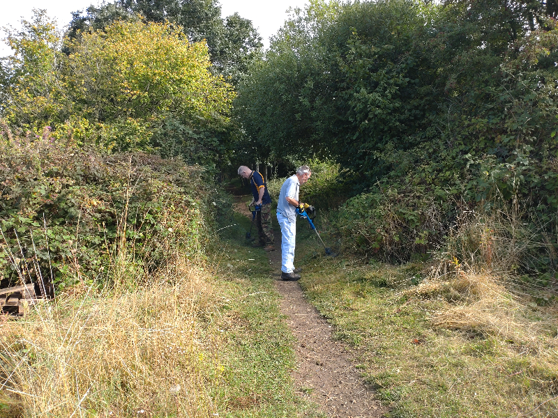 We covered about 400 metres today so good progress and the grass where we strimmed last week has not grown, so we can really push all of our attention towards the scrub at the edges.