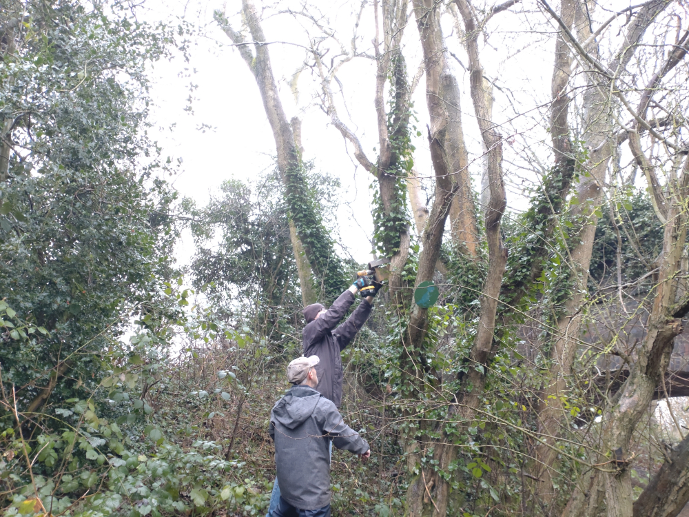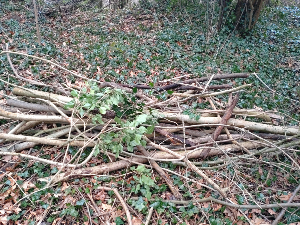 Today eight wildlife superheroes braved the cold. Marcus, Reece, Dave, Ian, Steve, George, Martin, and Paul. We wanted to make our triangular bench set a bit of a suntrap so we set about creating openings to allow shafts of sunlight to hit the benches.