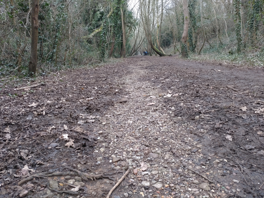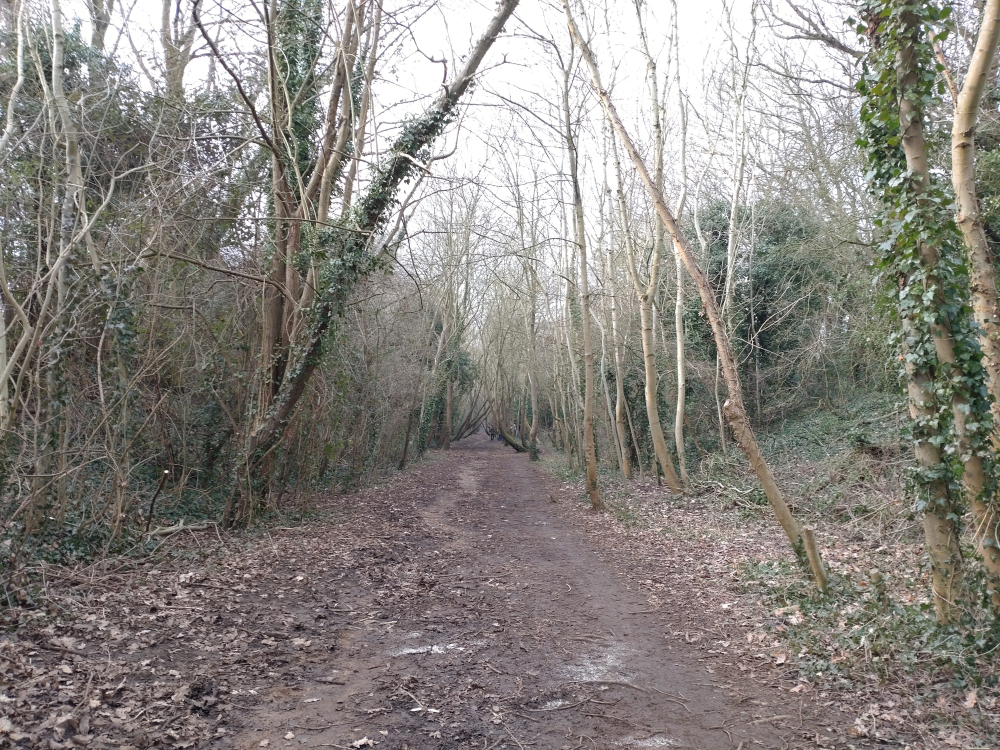 The trees that are curving into the path will have to go at some point. Because the area behind them has not been kept clear and they have grown where the light is. Such a shame but this is what happens when woodland is left unmanaged.
