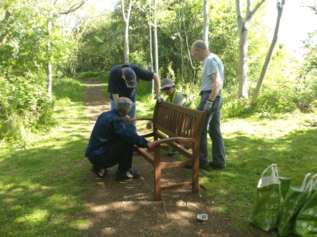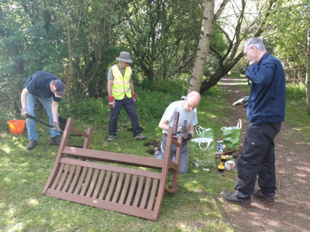 Eight of us wildlife heroes turned out on this super sunny morning. Marcus, Ian, Martin, Steve, Matt, Reece, Dave, and Paul, and after lugging all of our gear onto the path we split into two groups. The first group had to go and get the bench and the second group had to find a good location for it. Not sure if we had done much wildlife stuff at this point.
