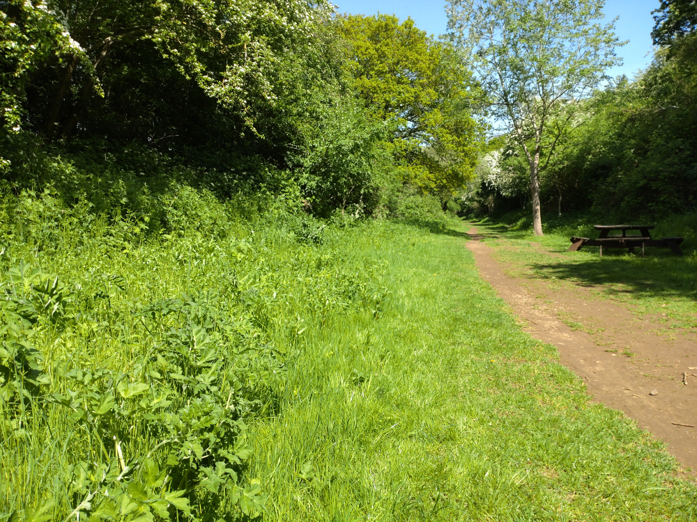 We can now see how the zones are starting to work. Path, short margin, wildflower-rich grassy margin, scrub, and trees, as we move towards the edge.