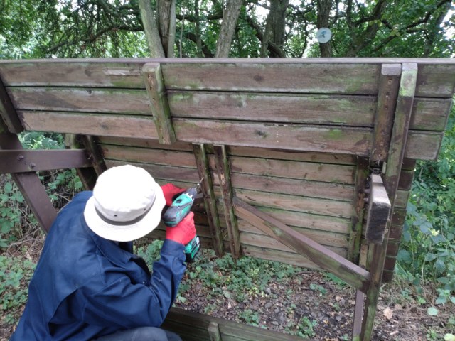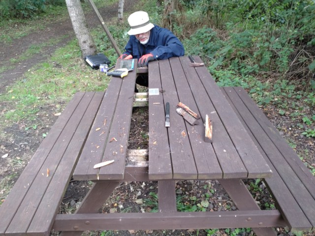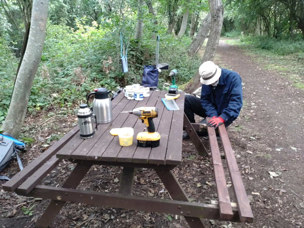 Strangely, everyone grabbed the strimmers and Zubat saws and left me and Reece to work out how to unassemble the benches.
