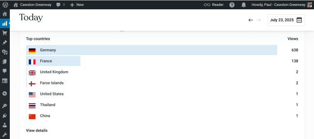 We have had some very thoughtful friends go abroad and click on the blog. Ruth is actually at the Faroe Islands as I type. I follow her blog and wish that I could write just 20% as well as she is able to. Have a look and subscribe if you like it, which I know you will. It’s called walkingaway and is brilliant!