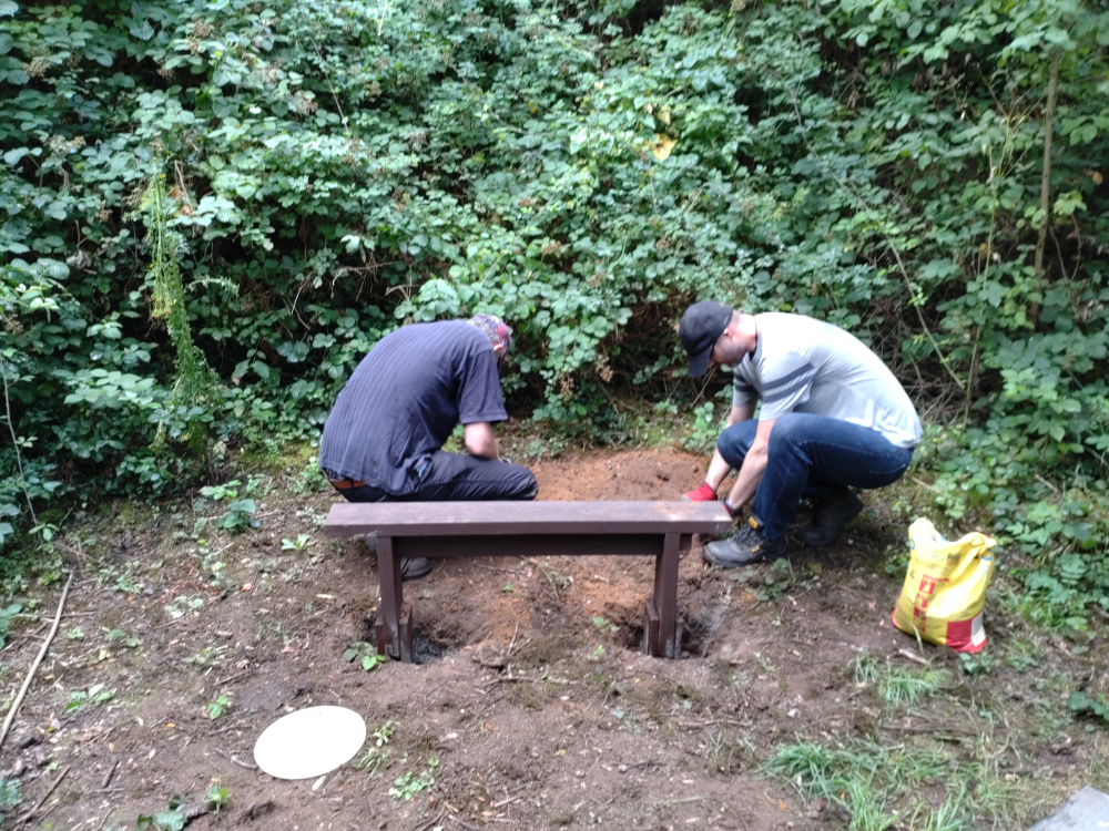There were actually nine of us today. Matt, David, Marcus, Reece, Steve, Martin, Dave, Mark, and Paul. Martin did a good litter pick whilst everyone else strimmed. However, the bench story, unfortunately, doesn’t end here.