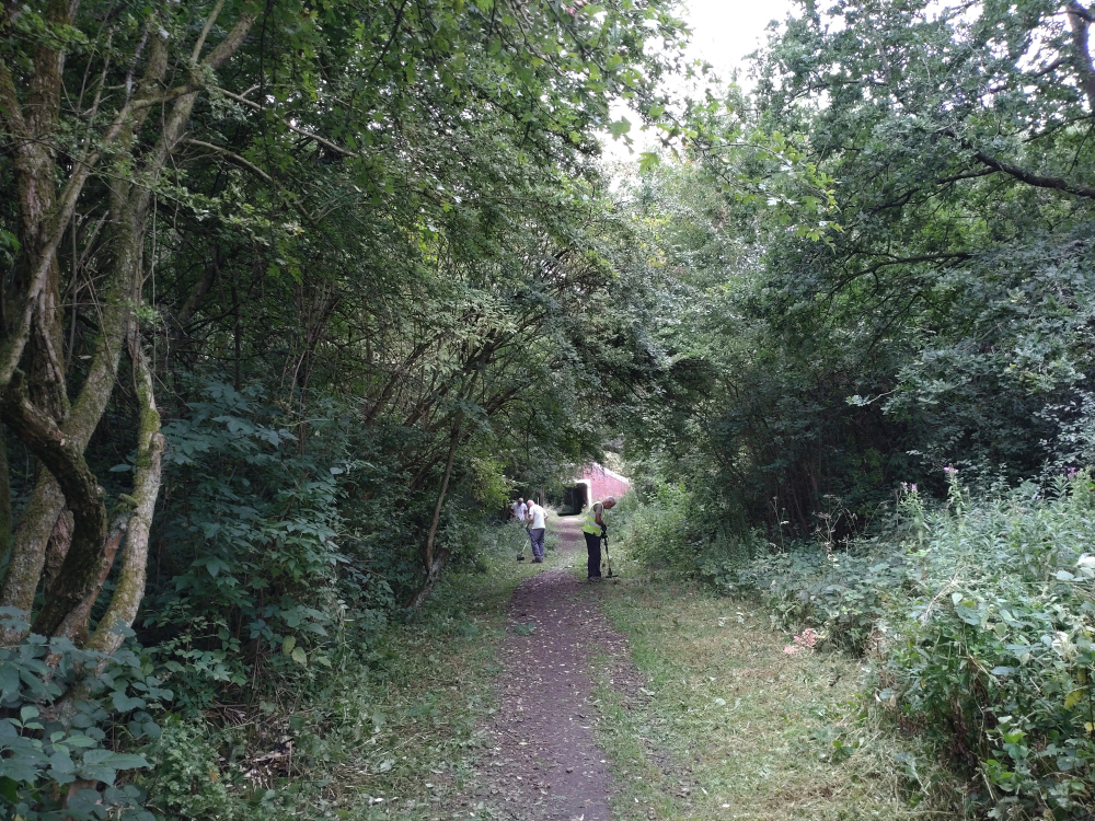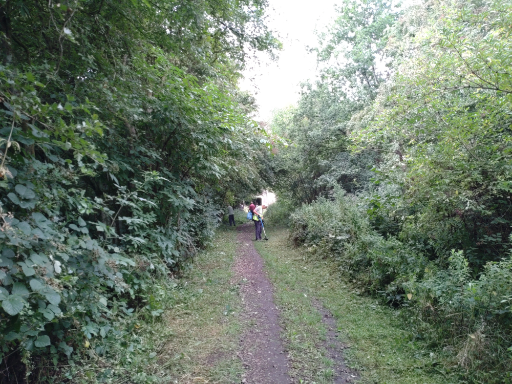 We tackled the stretch from Berrybanks to the underpass with the strimmers and pushed back a lot of wet grass. We had rain last night, despite the flood plain being pretty dry.