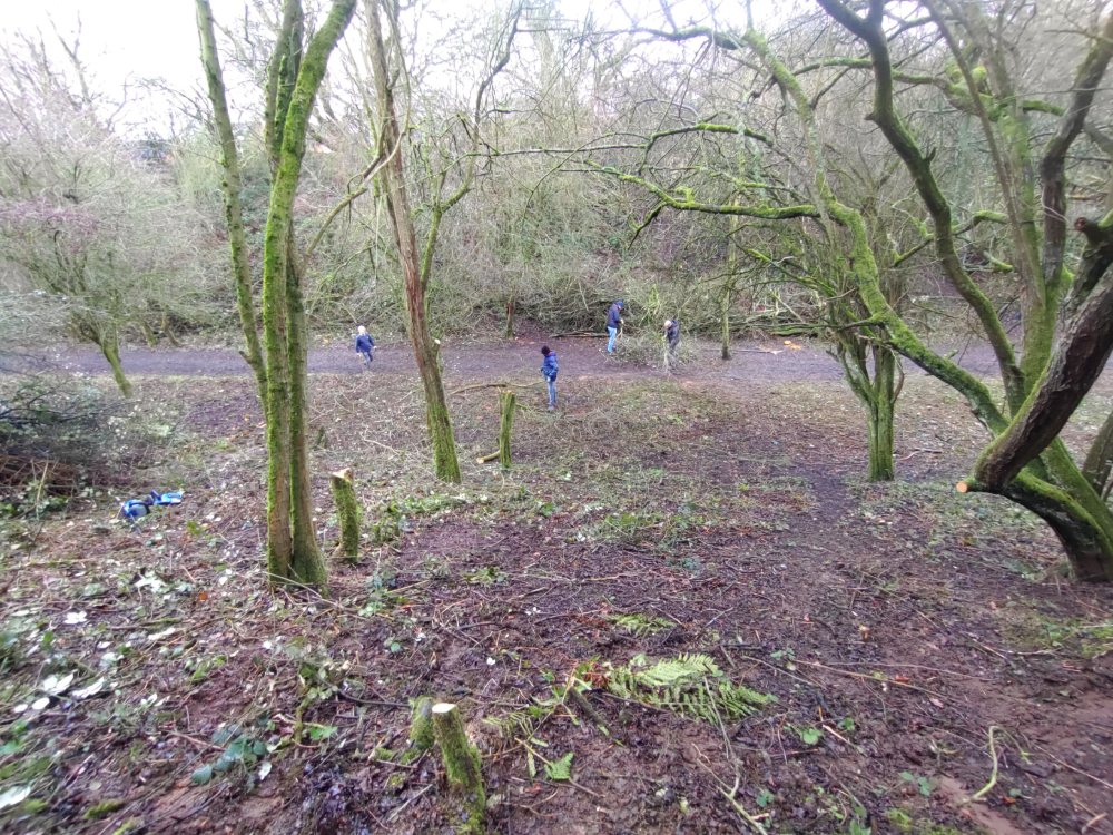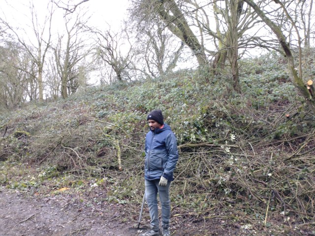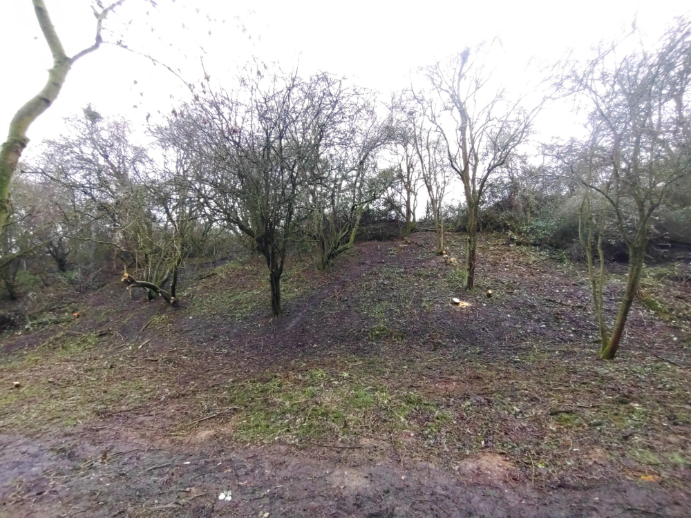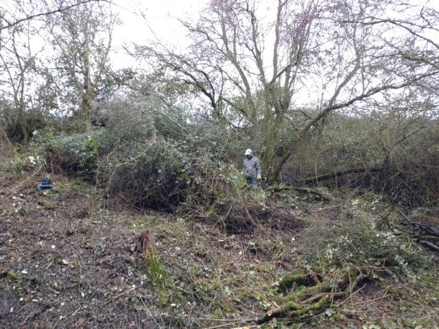 Ideally, the ground needs to be cleared totally, but we are running out of places to dump all the brash (cuttings), so some trees are going to have to stay. We cleared more of the overhang, so we now just need to wait until spring and summer and see what comes up.
