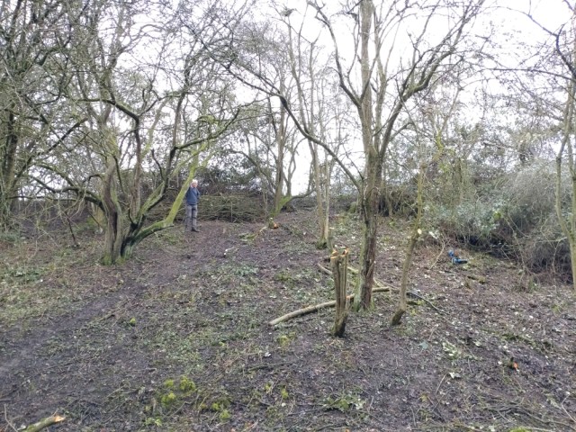 Over the summer a lot of what we have piled up will drop as the smaller branches rot away. The wildlife value that all of this dead wood will bring will be enormous. So many insect larvae will burrow into it and eventually become food for birds and other wildlife. We can already see robins and other small birds hopping about under the cover of the brash, foraging for a meal.
