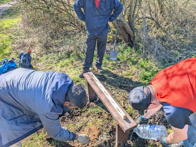 In our quest to get the trail ready for the start of Spring, Matt, David, Ram, Steve, Reece, Ian, Dave, and Paul turned out to try and get the benches and picnic tables in some sort of order.