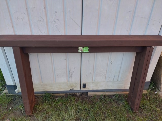 It needs woodstain, which we will do in the next few days, and the slats maybe have a season or two left in them, but the A-frame is sturdy, so this will last if we replace the seats and top as and when we need to.