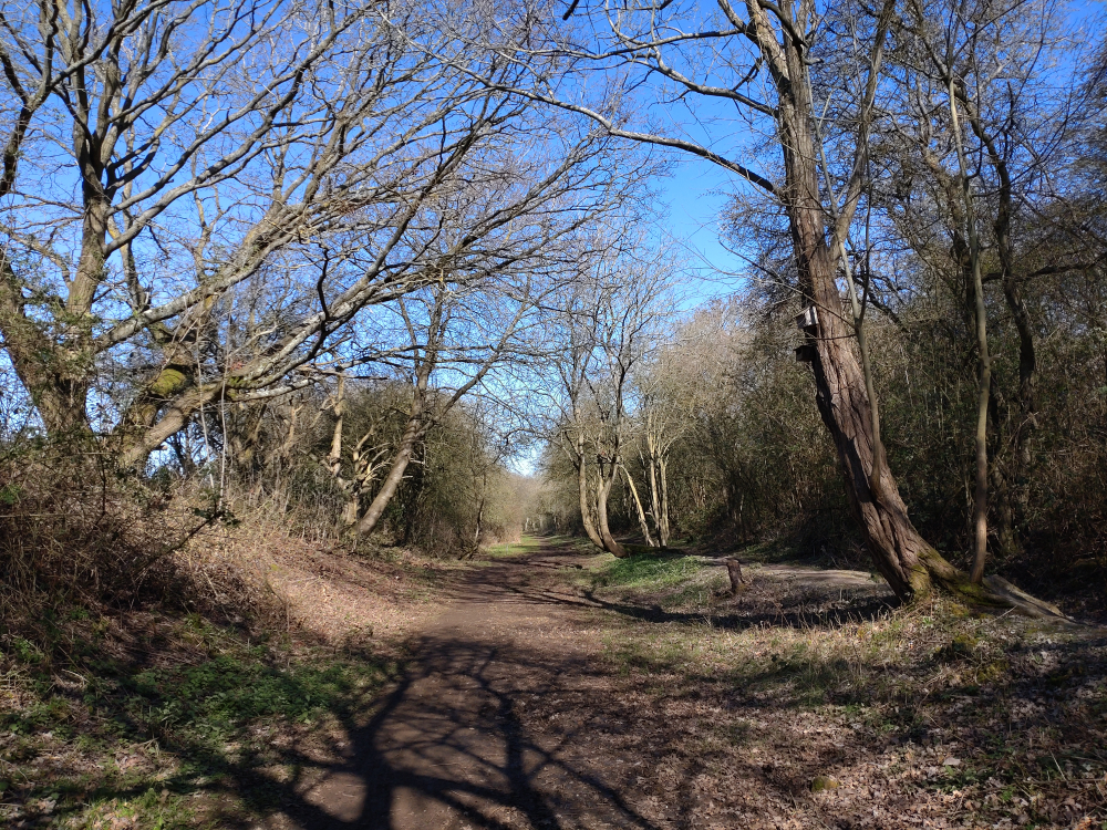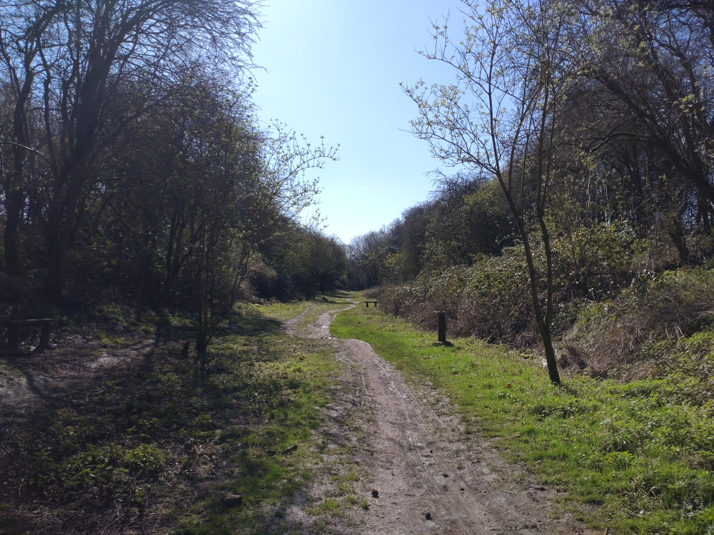 The path is starting to green up, and where scrub was, it is now grassy wildflower margins.